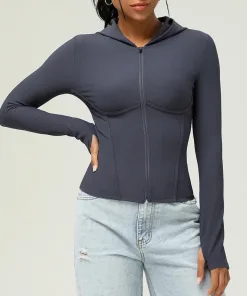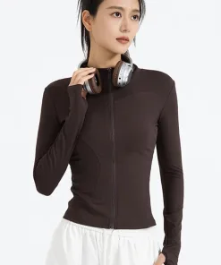 Women Sport Jacket Slim Fit Long Sleeve Fitness Athletic Coat Yoga Tops