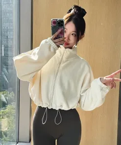 Autumn and Winter Women Lamb-Fleece Loose Sports Jacket