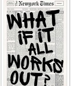 Retro Black And White Newspaper Poster What If It All Works Out Canvas Wall Art