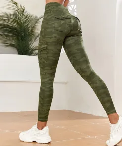 Digital Print Camouflage Work Yoga Pants Seamless Sports Legging with Pocket Gym Fitness Tight Elastic Slim Workwear