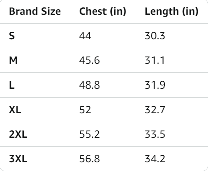 | Size | S, M, L, XL, 2XL, 3XL |