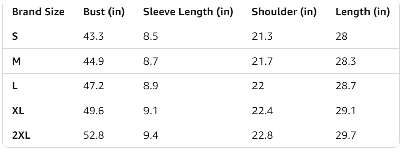 | Size | S, M, L, XL, 2XL |
